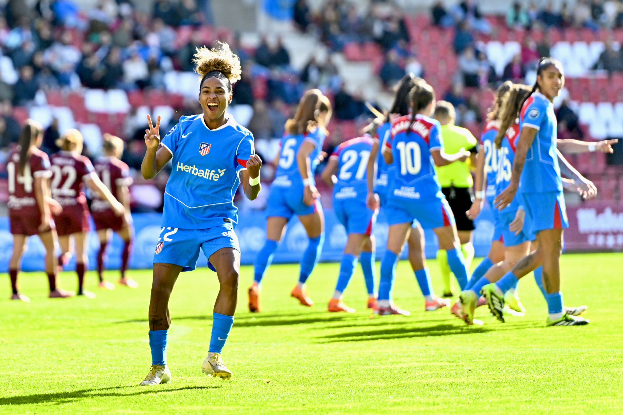 Luany da Silva celebra el segundo gol anotado ante el DUX Logroño en Las GaunasAtlético de Madrid